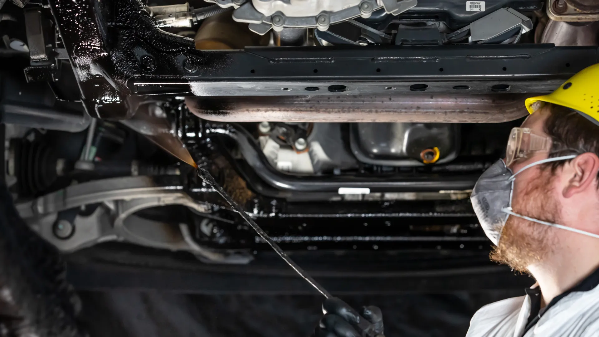 We focus on frame rails, rocker panels, wheel wells, crossmembers, and exposed fasteners while masking sensitive components.